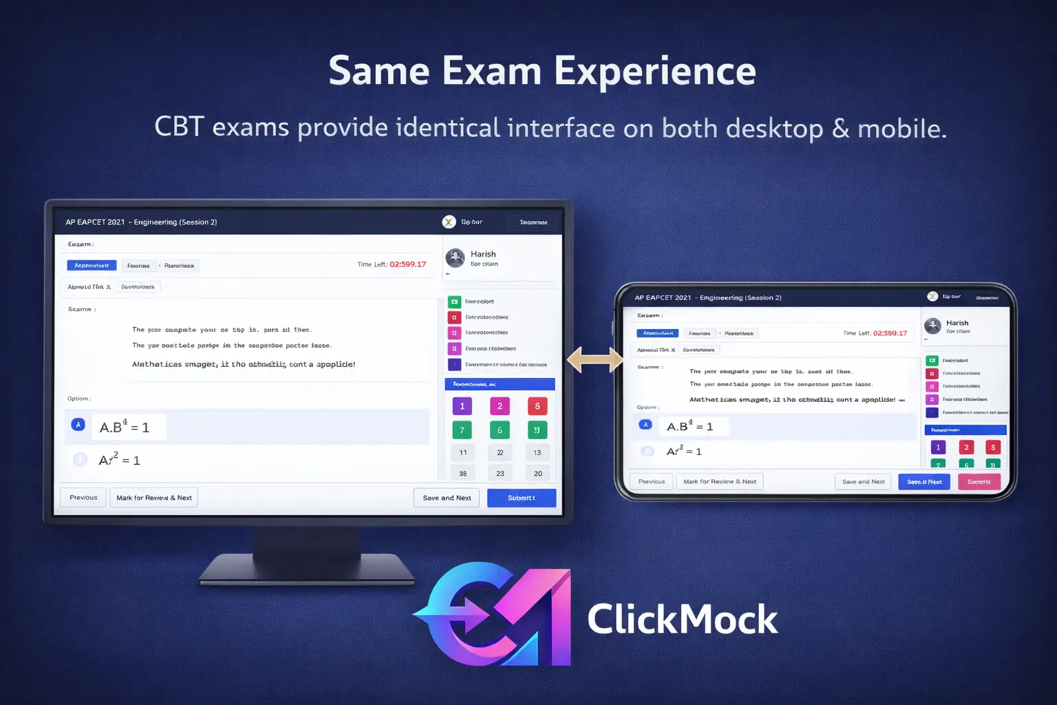 Exact same screen layout, question navigation, and controls as real JEE MAINS exam.