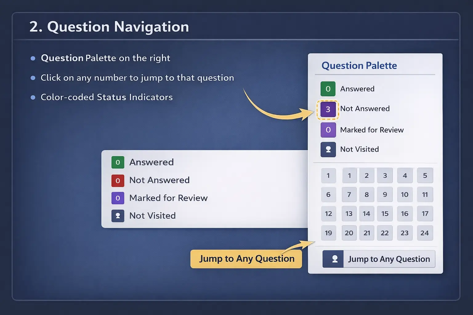 Practice with exact JEE MAINS CBT interface you'll see on exam day. Our mock tests match the official screen layout, timer, and navigation - no surprises on D-Day.